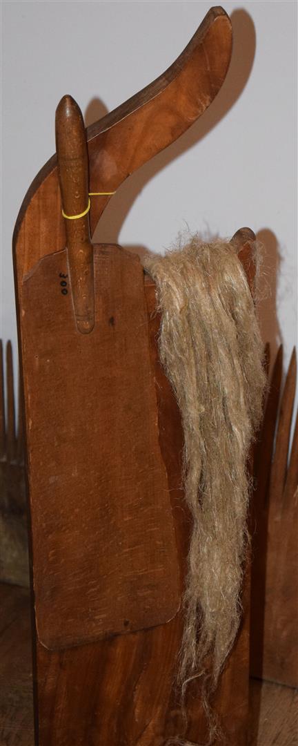 Der vorletzte Schritt bei der Leinenfaden-gewinnung war das sogenannte Schwingen. Dabei wurden die letzten auf dem Faden klebenden Holzreste mit dem hölzernen Schwingmesser entfernt.