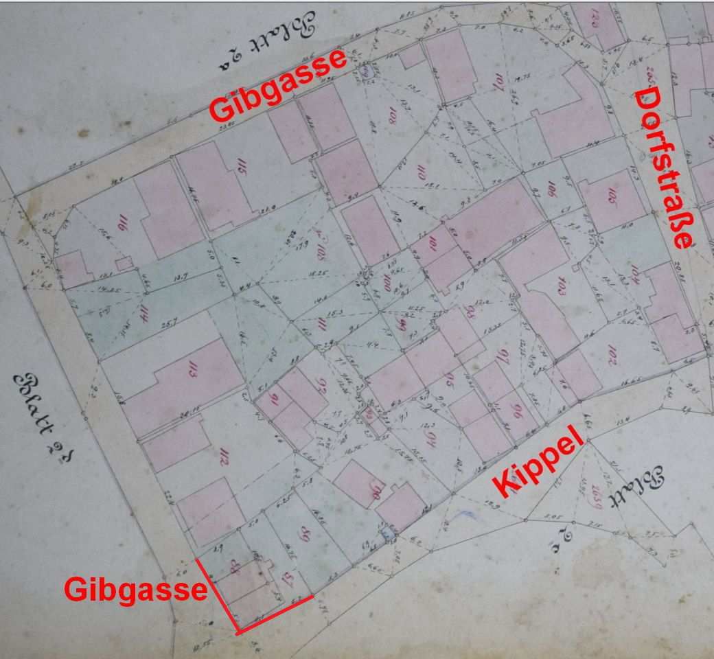 In dem Plan ist das Doppelhaus noch eingezeichnet. 1873 erfolgte ein Teilverkauf an Adam Haupt (heute Mühlbachstraße 3). Im Jahr 1877 erwarb Friedrich Köhler von Adam Haupt und Hermann Schönberg das gesamte Grundstück und baute im Jahr 1878 darauf eine Scheune. 2 – 002