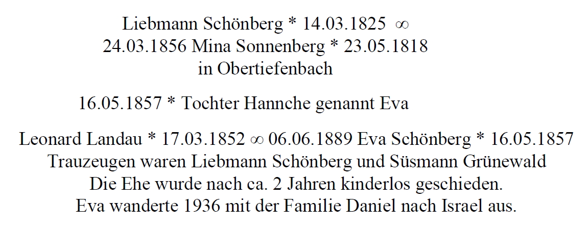 Bis zum Jahr 1889 hatten Liebmann und Mina Schönberg, sowie deren Tochter Eva Einsitzrecht im Haus Nr. 45 bei Salomon Grünewald. 2 – 007