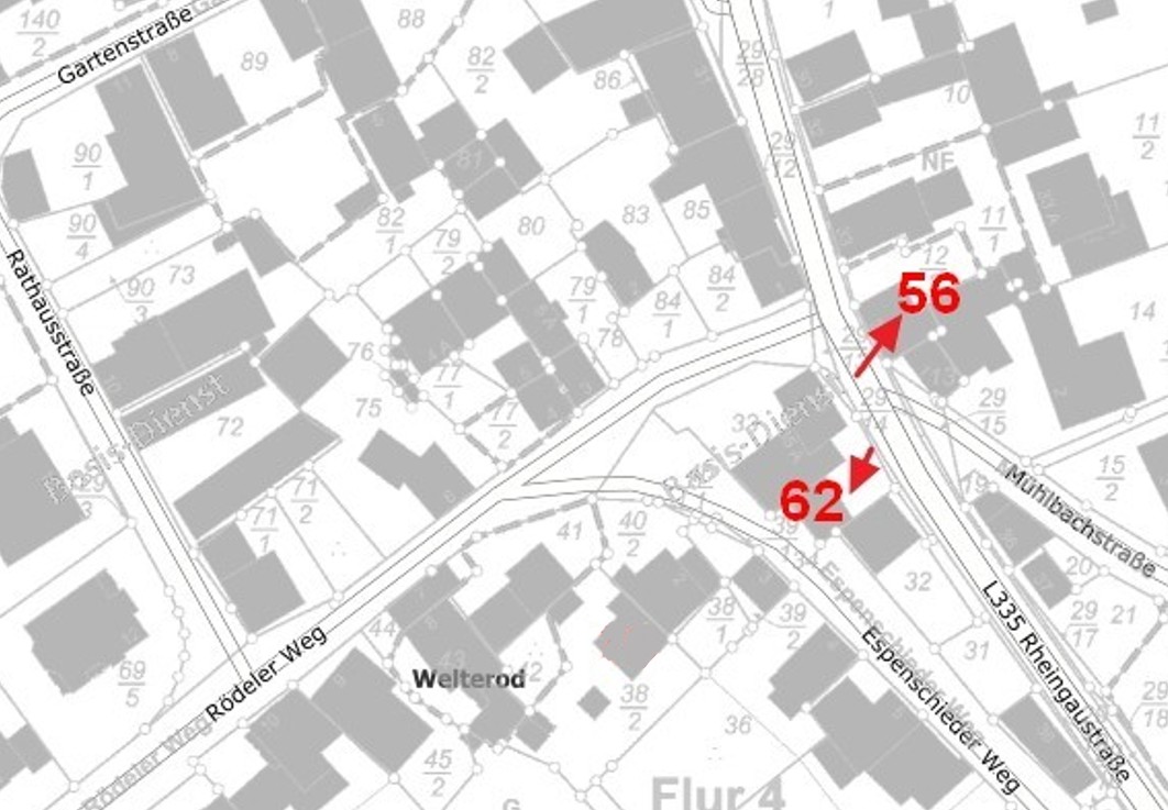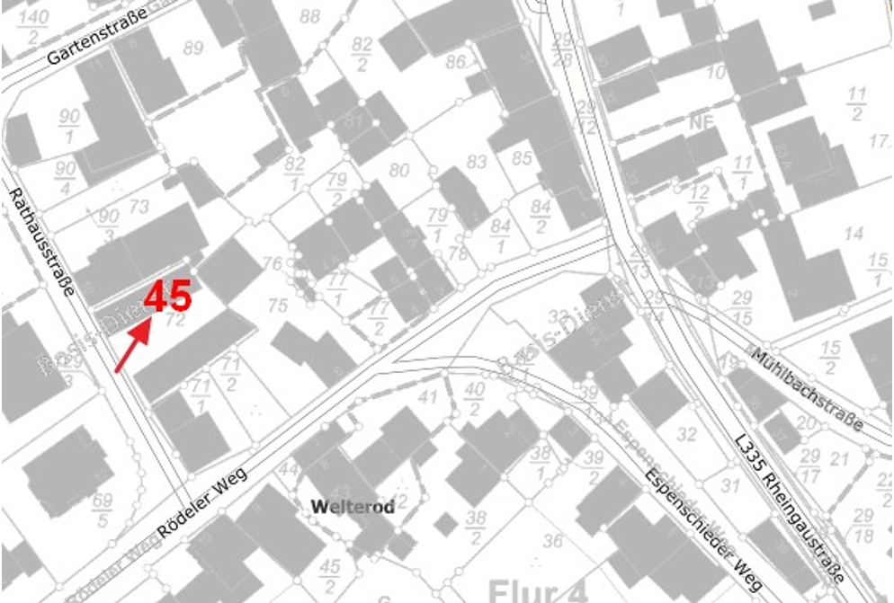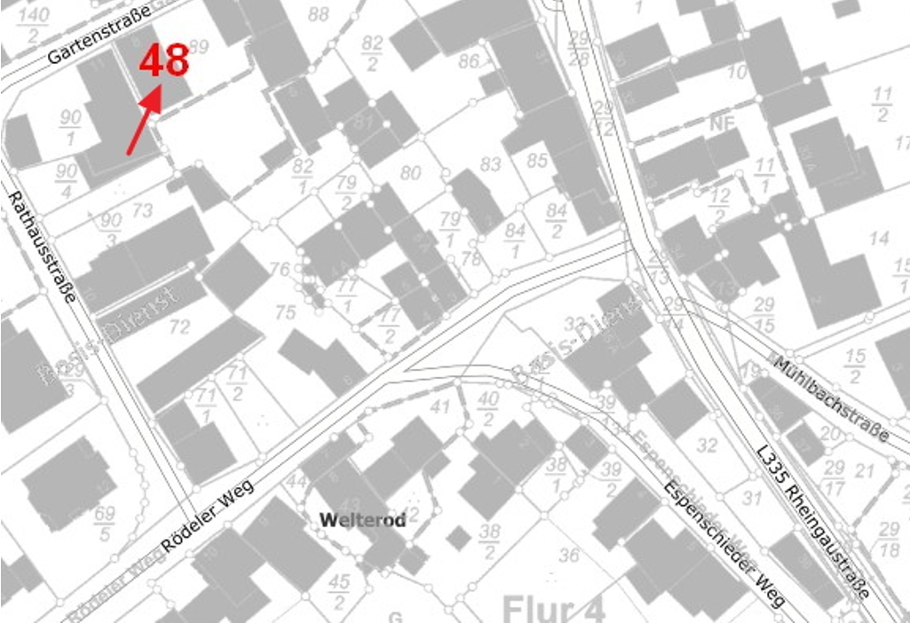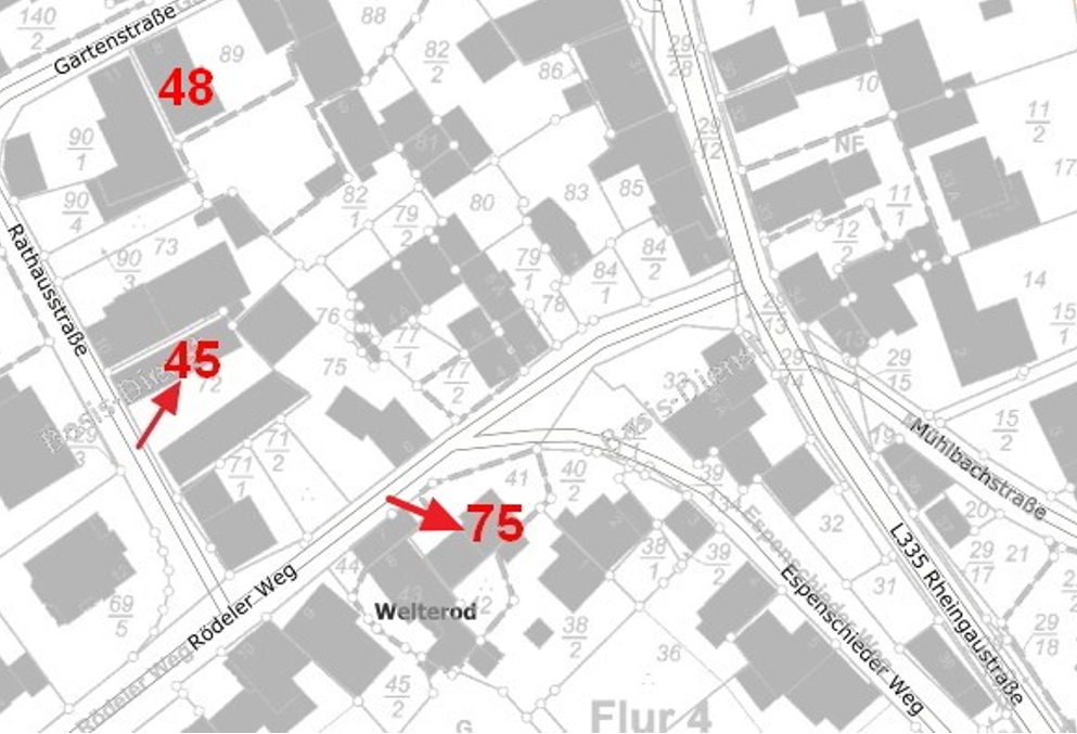 Ausschnitt Lageplan Ortsbereich Welterod von 1874