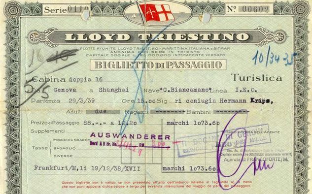 Die jüdischen Hilfsvereine in den einzelnen Orten proklamierten schon ab 1936 zunehmend Shanghai als Ausreiseziel, boten Informationen an und halfen bei den Vorbereitungen. Die Menschen standen Schlange an den Verkaufsstellen für Tickets nach Shanghai. Nicht wenige verkauften alles, was sie besaßen, um eine Überfahrt nach Shanghai zu erwerben. Von den jüdischen Flüchtlingen bevorzugt waren die italienischen Schifffahrtslinien von Triest oder Genua wegen der kürzeren Seereisezeit von 3 bis 4 Wochen. Weitere Ausgangshäfen waren Danzig, Hamburg, Bremen, Rotterdam, Antwerpen. 4 – 015 Nach eigenen Angaben hat Moritz, der absolut mittellos war, seine Ausreise durch die Hilfe einer internationalen jüdischen Organisation bekommen. 4 – 017 Er soll auf dem Auswanderschiff als Kohlentrimmer gearbeitet und dadurch, dass lebensrettende Ziel Shanghai erreicht haben.