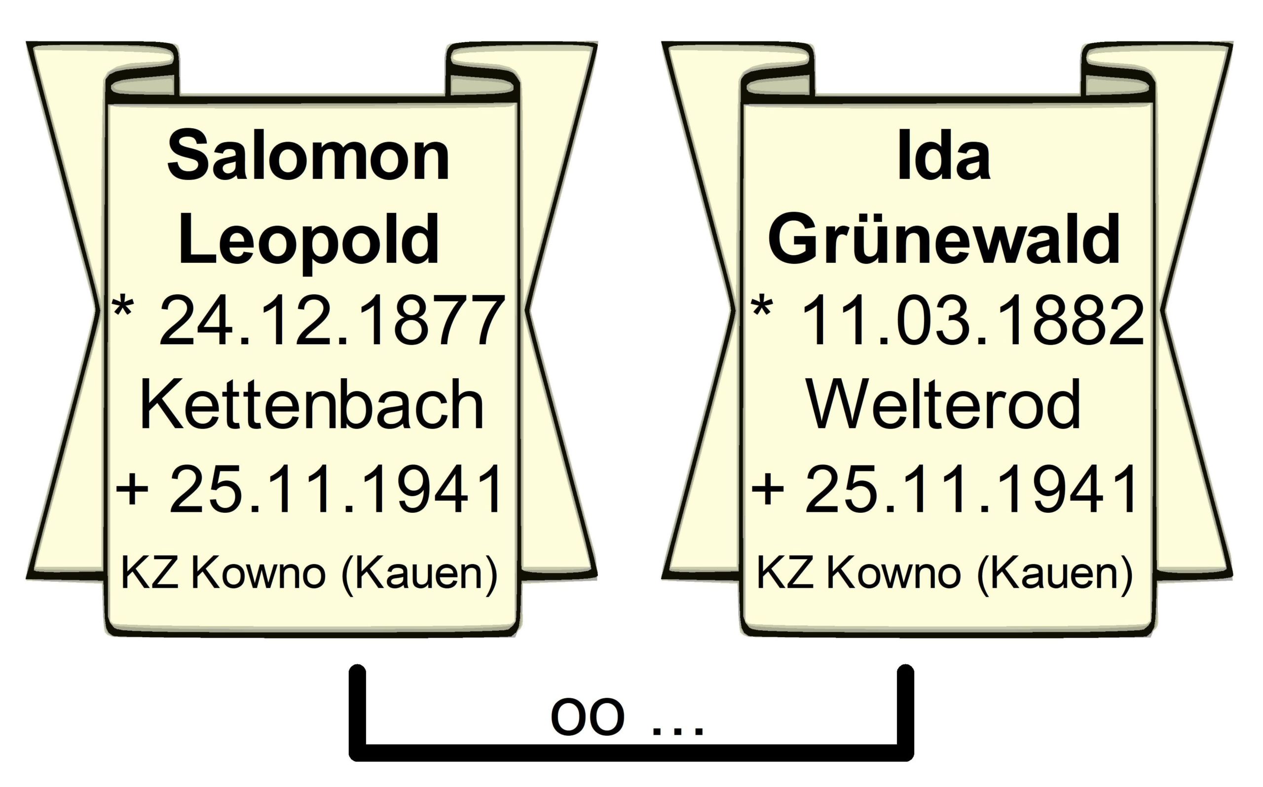 Die offiziellen Deportationen der Juden aus dem Gebiet des deutschen Reiches begannen Mitte Oktober 1941. Organisiert wurden sie vom Reichssicherheitshauptamt in Berlin. Für das Gebiet des Regierungsbezirkes Wiesbaden war die Gestapo in Frankfurt zuständig, die auch eine Außenstelle in Wiesbaden betrieb. Im Oktober/November 1941 hatte das Reichssicherheitshauptamt der Frankfurter Gestapostelle drei Deportationszüge für je eintausend Menschen zugewiesen. Die Ziele waren Lodz im besetzten Polen, Minsk in Weißrussland und Kaunas in Litauen. Danach wurden die Transporte unterbrochen. Bei einem dieser Transporte, am 22. November 1941, waren Salomon und Ida Leopold dabei. Ihre Sterbedaten sind 25. November 1941 in Kowno Litauen.