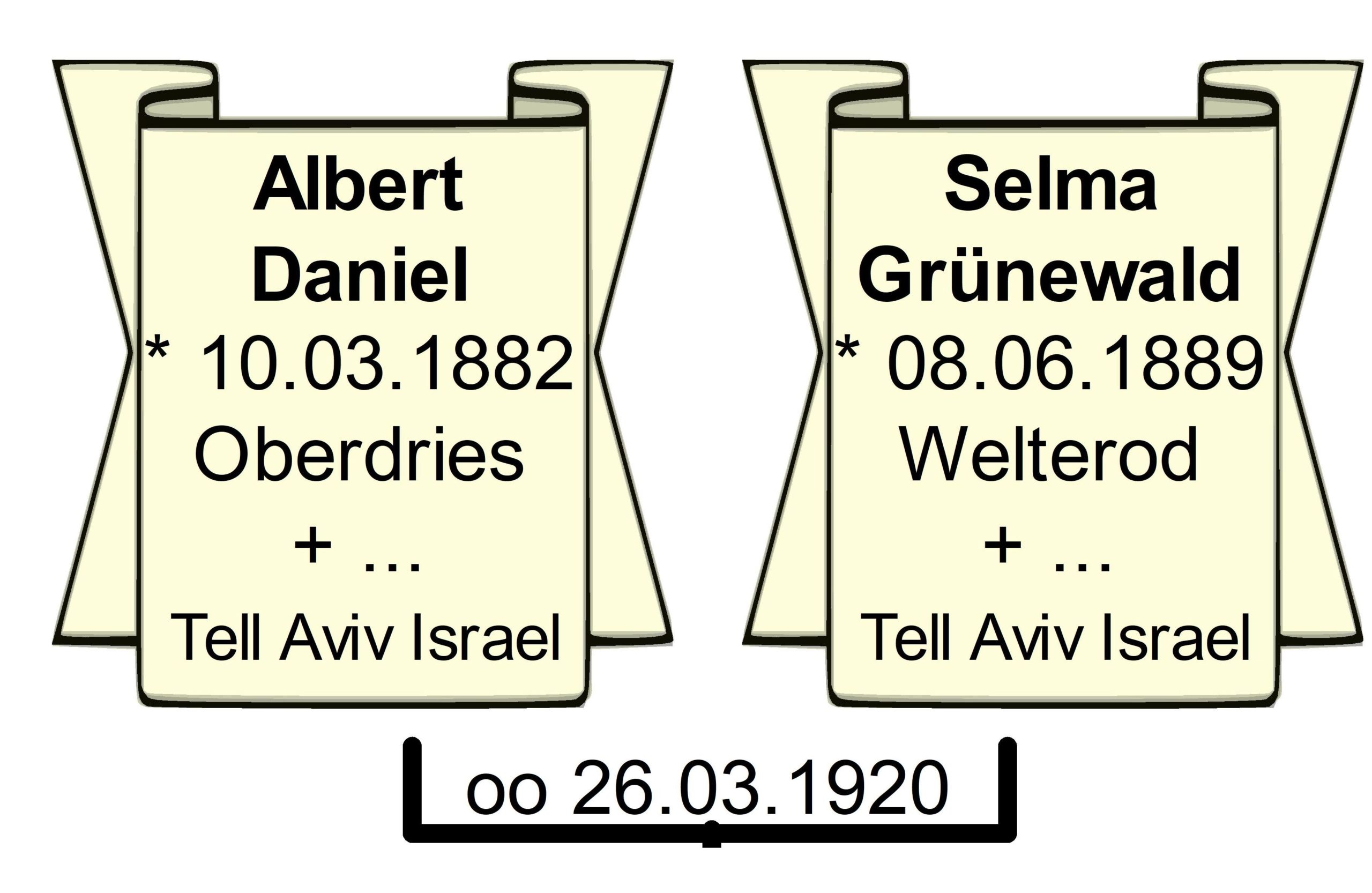 Albert Daniel war gelernter Schuhmacher, übte diesen Beruf in Welterod aber nicht mehr aus. Er war sehr sprachbegabt, konnte hebräisch sowie englisch und war Vorbeter bei religiösen Zusammenkünften. Außerdem hatte seine klare Bassstimme im Welteroder Gesangverein einen guten Ruf. Nach der Heirat mit Selma Grünewald kauften beide das Haus Nr. 48 (Heute Gartenstraße 8) von den Erben der verstorbenen Witwe des Karl Kern. Sie betrieben einen erfolgreichen Viehhandel und eine Landwirtschaft.