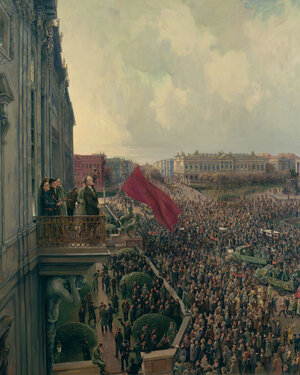 Karl Liebknecht proklamiert eine freie sozialistische Republik nach sowjetischen Muster.