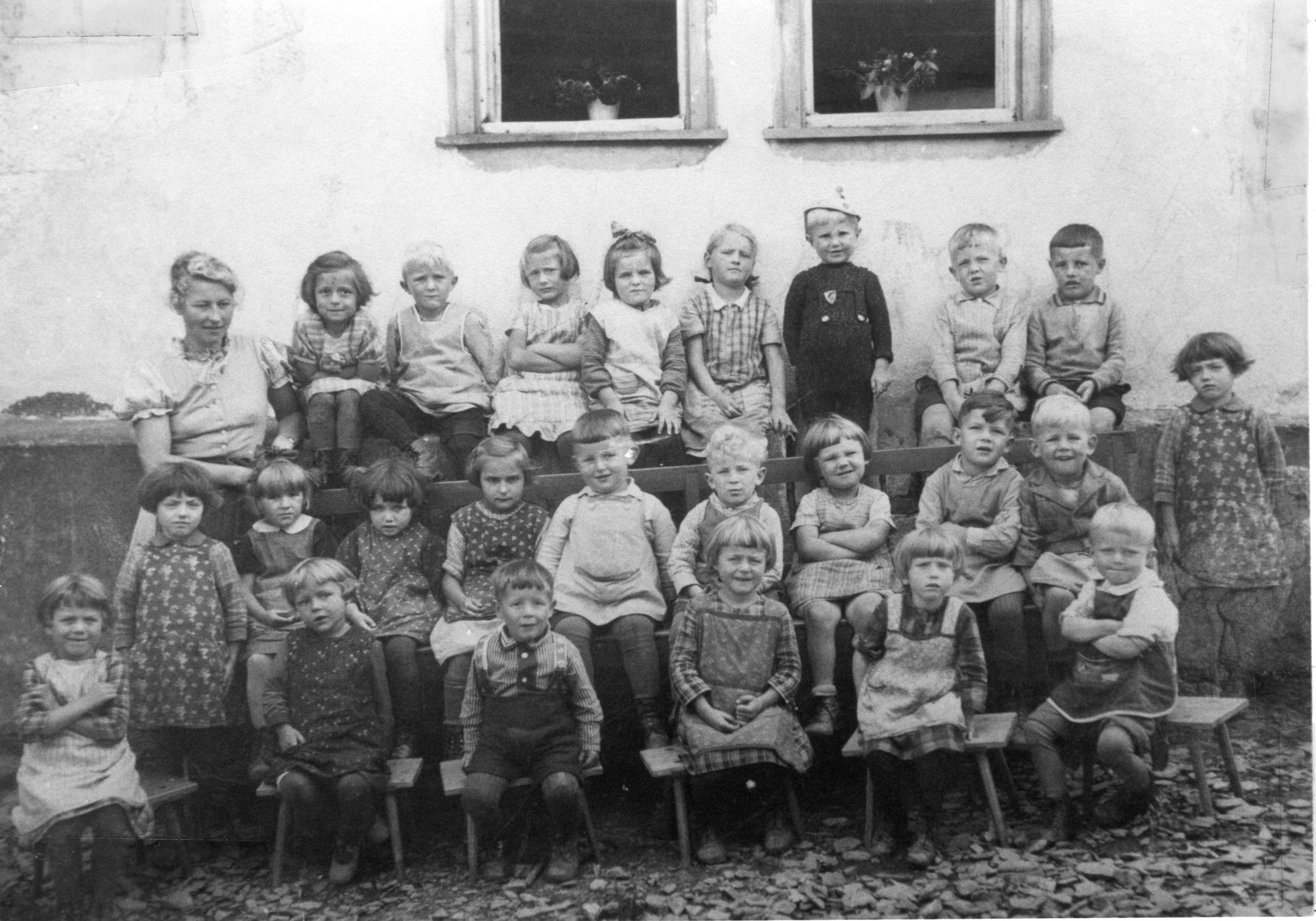 Obenstehende Aufnahme entstand 1937 vor dem Haus Nr.76 (alt) – heute Espenschieder Weg 1 – Höchstwahrscheinlich gingen schon von Anfang an, auch Kinder aus Strüth in den hiesigen Kindergarten, wie auf obenstehenden Bild zu sehen ist. Ab den 1960er Jahren kamen auch Kinder aus Lipporn und später aus Espenschied hier nach Welterod.Später in den 1940er Jahren war der Kindergarten vorübergehend im – Hirtenhaus – (Espenschieder Weg 3) Kindergärtnerin war Martha Salzmann.